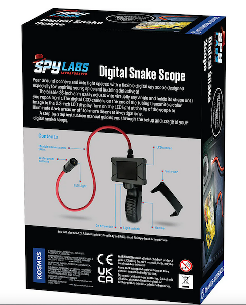 Peer around corners, into tight spaces, and even under water with the only flexible digital spy scope designed especially for aspiring young spies and budding detectives!