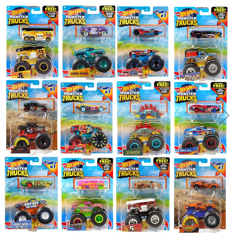 The Hot Wheels® die-cast Monster Trucks are the baddest trucks ever built for competition and ultimate dominance! They square off in head-to-head battles with their GIANT wheels!